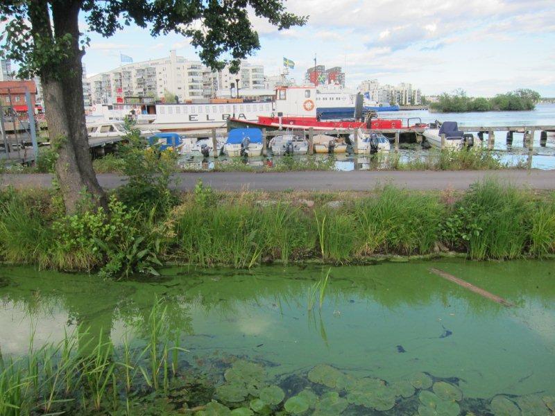 Just nu är det grönalger i Mälaren. Varning algerna är giftiga!