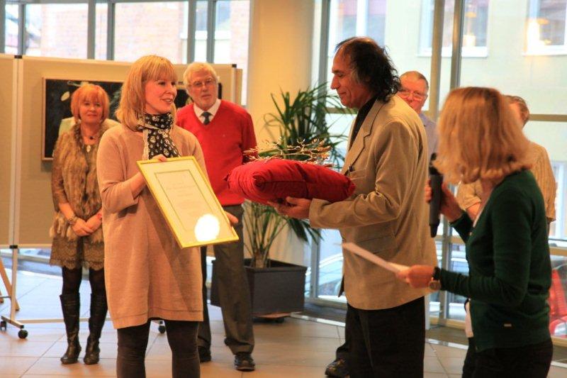 Årets Västmanlänning Hassan Shamshiri tog emot vacker mistelkvist gjord av Anna Fredell, silversmed på Vallby, samt diplom av Kristina Hallberg från VLT.