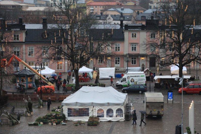 Under paraplyer och tältdukar minglar marknadsbesökarna i ett försök att uppbringa lite julstämning trots det ruggiga vädret!