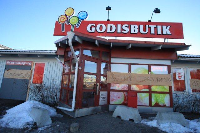 Godisbutik (Sötsugen) i konkurs på Erikslund. Ps. I Sverige äter man godis hela 17 kilo under ett år !