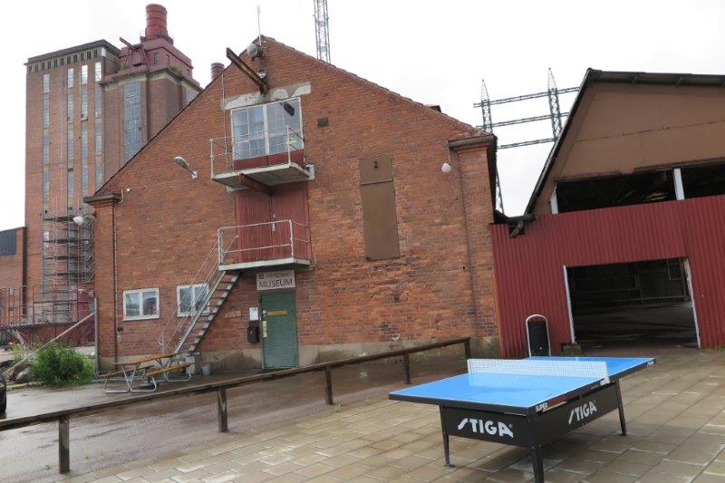 Fritidsbåtmuseum i Västerås. Äventyrsbadet Kokpunkten i bakgrund.
