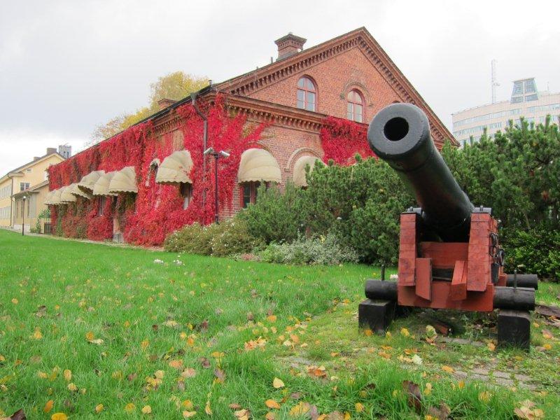 Kanonerna (det finns 2 st) vid hamngatan kom till Västerås som present från Kalmar