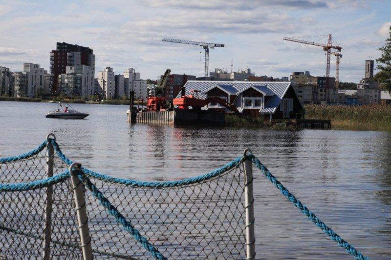 Flytande "Hotell Ooops" på sin nya plats vid Notudden